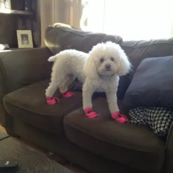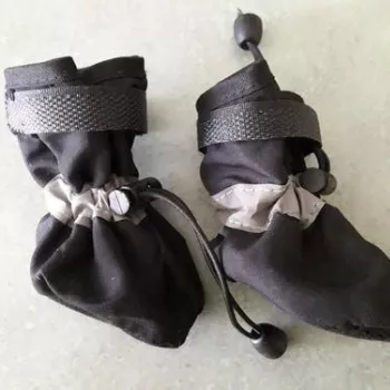 These dog shoes are a perfect fit for her little paws and the only ones that stay put. Now she has two pairs, and we're both grateful for the secure design.
